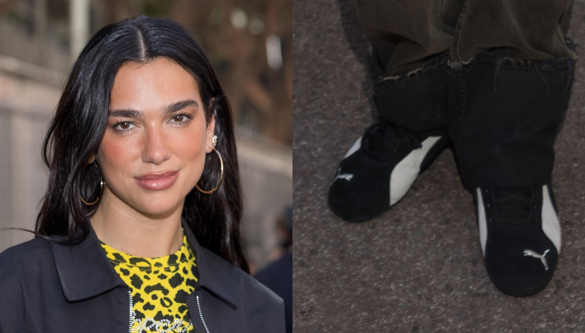 At the Formula 1 event, Lipa wore the shoe in black. It is a simple shoe with the Puma logo on the toe in white as well as a white Foamstrip. Gold branding offers an additional flourish. The shoe is low-to-the-ground with a leather and suede upper. This is not the first time that Lipa chose an animal print to pair with the Puma Speedcat: when she attended a launch celebration for the shoe in 2024, she chose a leopard-print miniskirt.