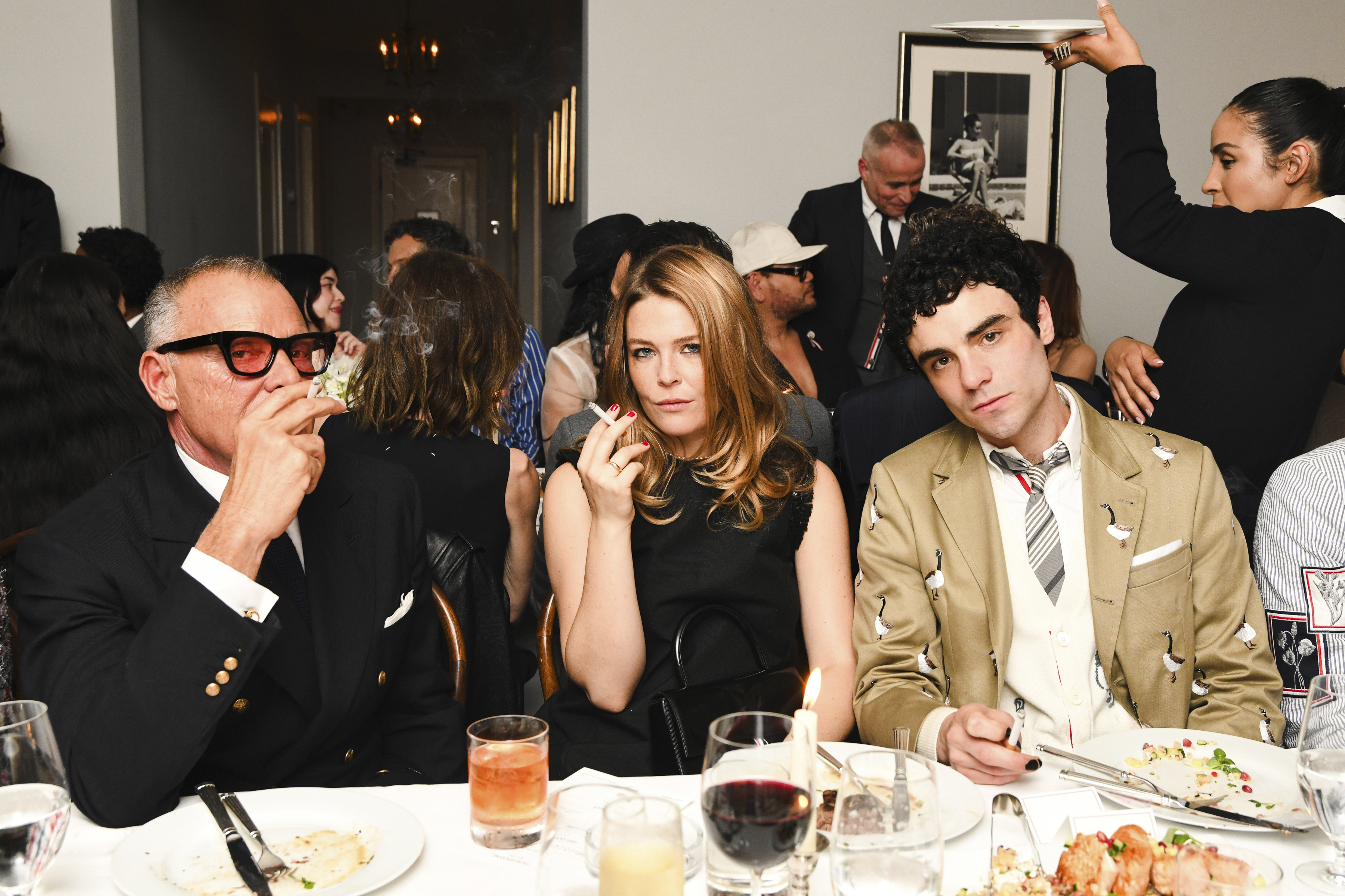 Longtime friends including editor Lisa Love, who cohosted a dinner at Chateau Marmont later that evening. Among the guests were Leighton Meester — the first celebrity to wear Thom Browne women’s on the red carpet (at the Gotham Awards in 2010) — along with filmmakers Barry Jenkins, Lulu Wang, Baz Luhrmann and Janicza Bravo, as well as actors Ke Huy Quan, Yara Shahidi, Teyana Taylor and Manny Jacinto.