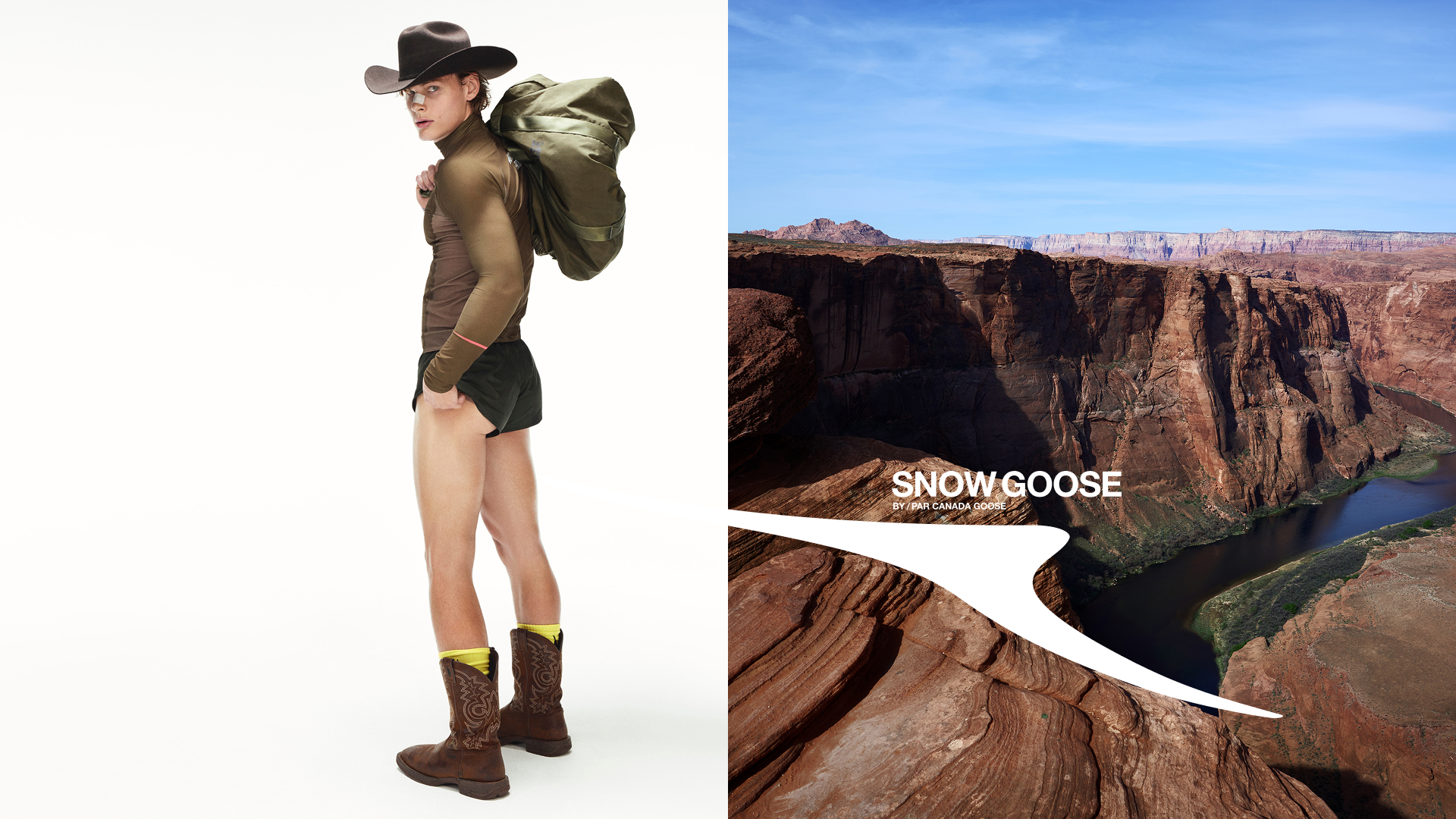 The journey to Lake Powell is part two of the Toronto-based company’s efforts to build buzzy brand moments. For the campaign, titled “Wild Horizon,” model Lara Stone wears a cropped t-shirt, short shorts and over-the-knee wader boots — a far cry from the winter layers and down coats the brand is known for. The first Snow Goose campaign featured actor and activist Ethan Hawke, with an excursion to Iceland. Both campaigns were shot by Willy Vanderperre.