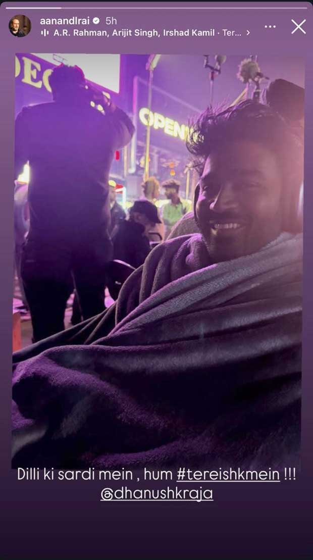 Aanand L Rai’s latest Instagram story has once again sent fans of Tere Ishk Mein into a frenzy. The filmmaker dropped a candid moment from the film’s Delhi schedule: Dhanush, layered up and braving the capital’s biting cold, caught between takes. Captioned, “Dilli ki sardi mein, hum #tereishkmein !!! @dhanushkraja,” the post is a slice of the world this team has been building.