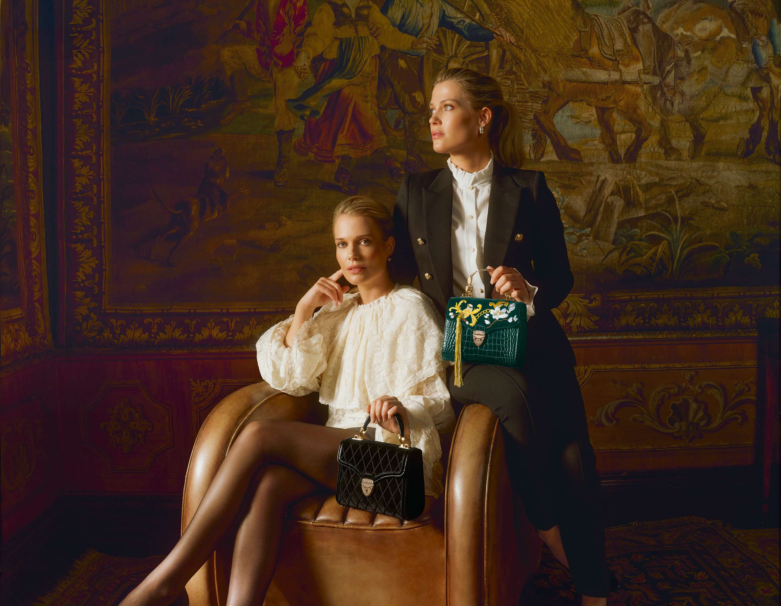 The sisters – and their bags – also star in the brand’s holiday campaign, A Very Aspinal Christmas, which was shot at West Wycombe Park, a stately home in Buckinghamshire, England that’s been used for film sets including “Downton Abbey,” and “The Importance of Being Earnest.”