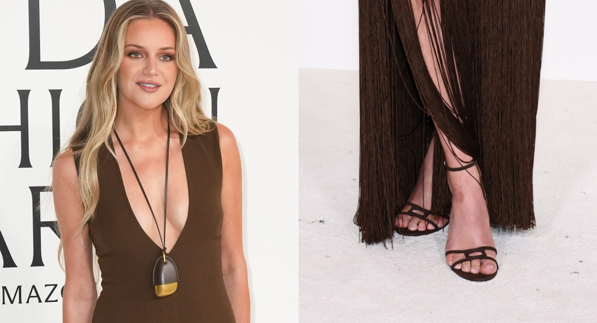 The “Penthouse” singer paired her sandals with a matching brown dress from Michael Kors. The ankle-length dress featured long fringe meeting just below the hips that reached the bottom hem of the garment. Ballerini added chunky bracelets and a pendant necklace to the ensemble. Ballerini also attended Michael Kors’ spring 2026 show during New York Fashion Week in September, where she also wore a warm brown look.