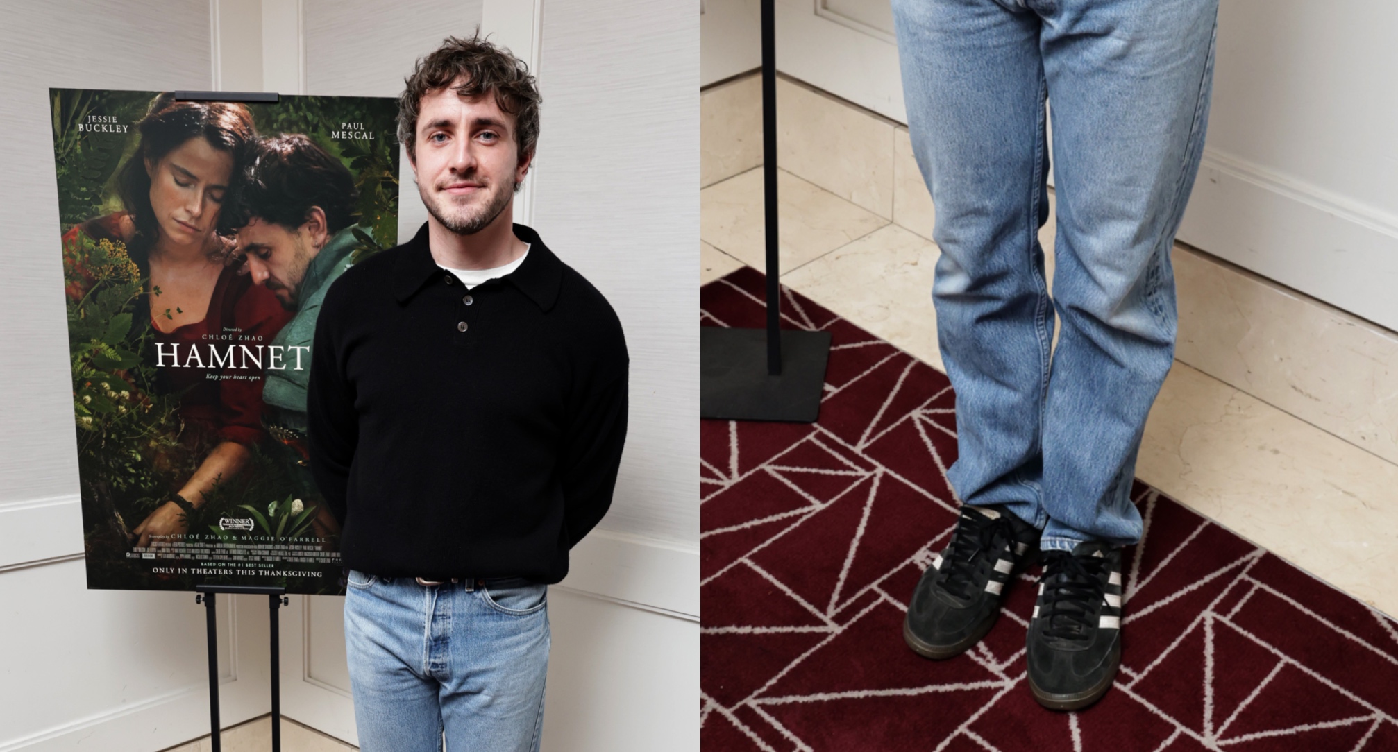 The “Normal People” star wore the famous sneakers with a laid-back look consisting of a black long-sleeve polo shirt over a white tee, finished with relaxed light-wash jeans. As part of the event, Mescal, who portrays William Shakespeare in the film (which was adapted from Maggie O’Farrell’s 2020 novel), chatted with Antonia Blyth, a British writer based in Los Angeles. “Hamnet” also stars Jessie Buckley, Joe Alwyn and Noah Jupe.