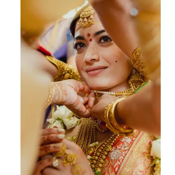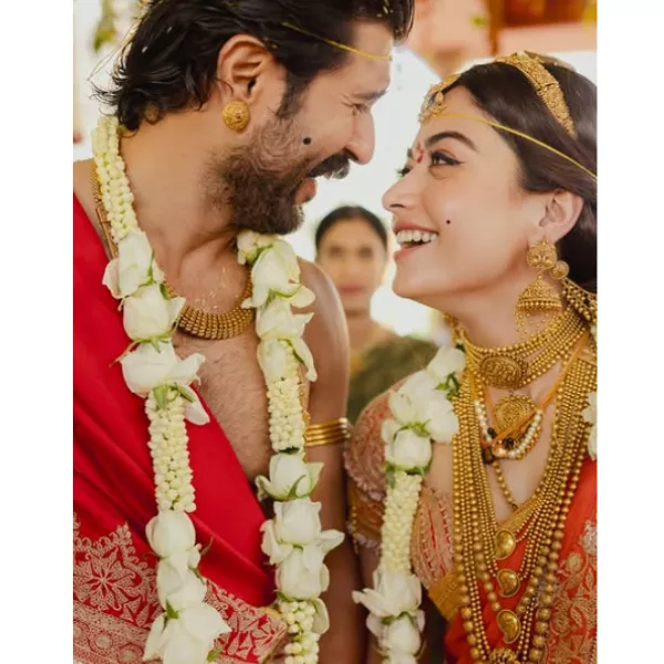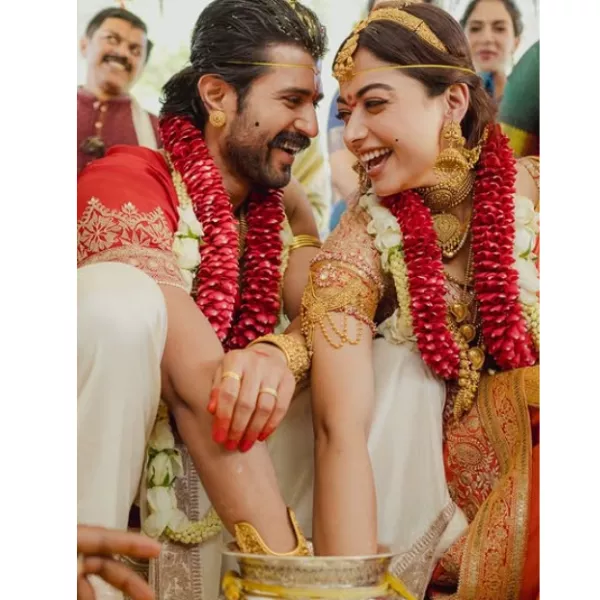 She wanted it to be very special, not just ceremony bling. Rashmika wanted her mangalsutra to speak about her real bond with Vijay Deverakonda, and she had kept the whole mangalsutra design a top secret from her love, Vijay. It was only during the wedding ritual that Vijay Deverakonda found out about it. This surprise had made their sweet moment very special and also memorable for years to come.